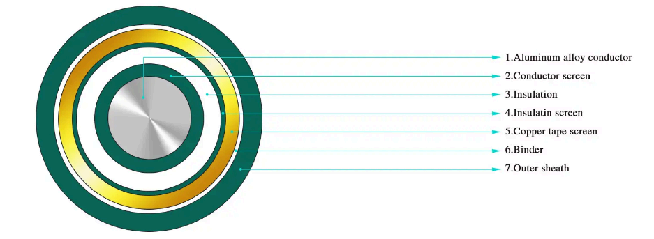 ·كابل طاقة عازل أحادي النواة من مادة XLPE للجهد المقدر من 3.6/6 كيلو فولت~26/35 كيلو فولت