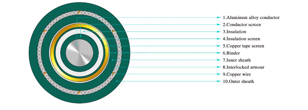 | YILV23 | حزام فولاذي معزول من الألومنيوم XLPE مدرع كابل الطاقة المغلف بالبولي إيثيلين |
